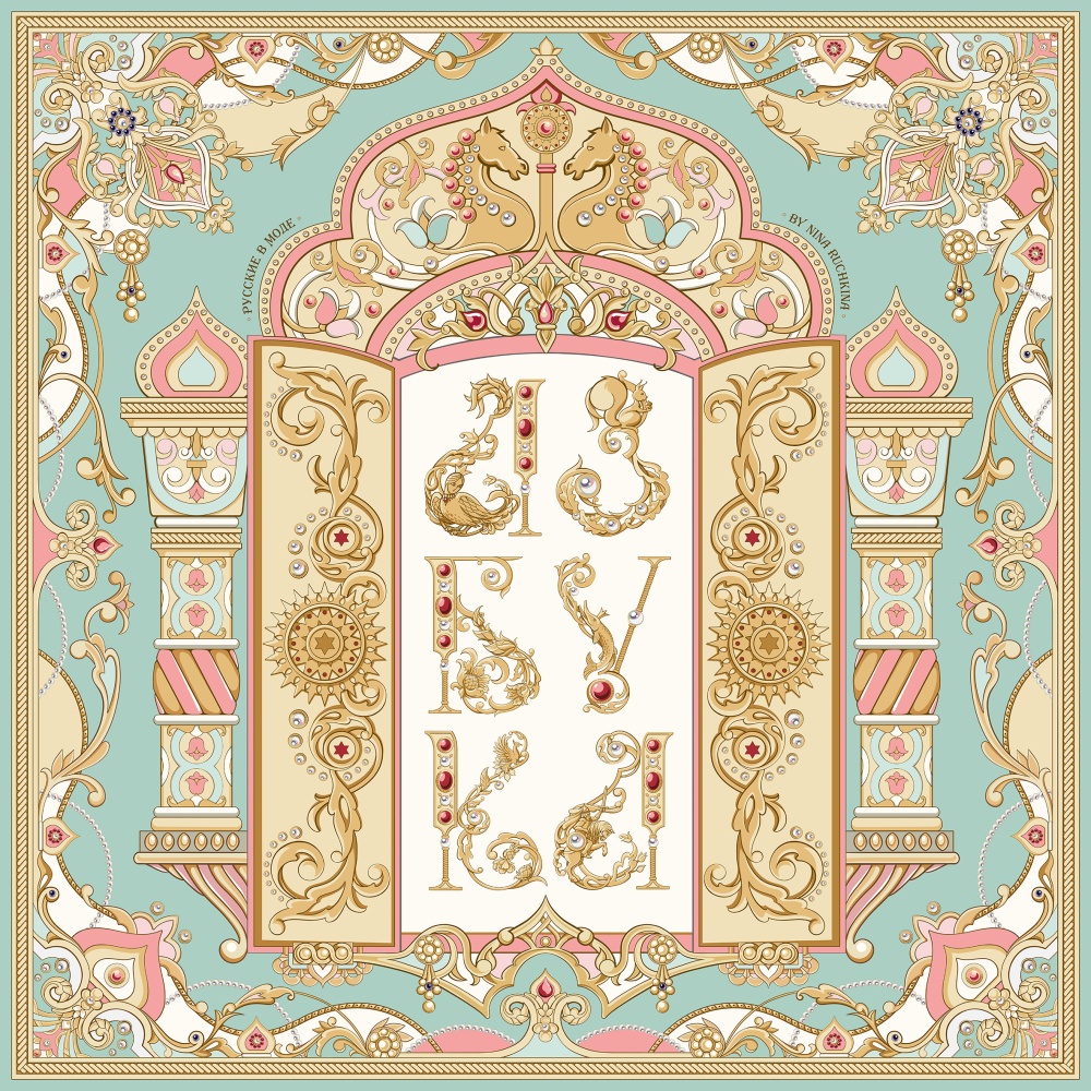 -Платок "Русская Азбука" , 90*90, 70% шёлк 30% вискоза