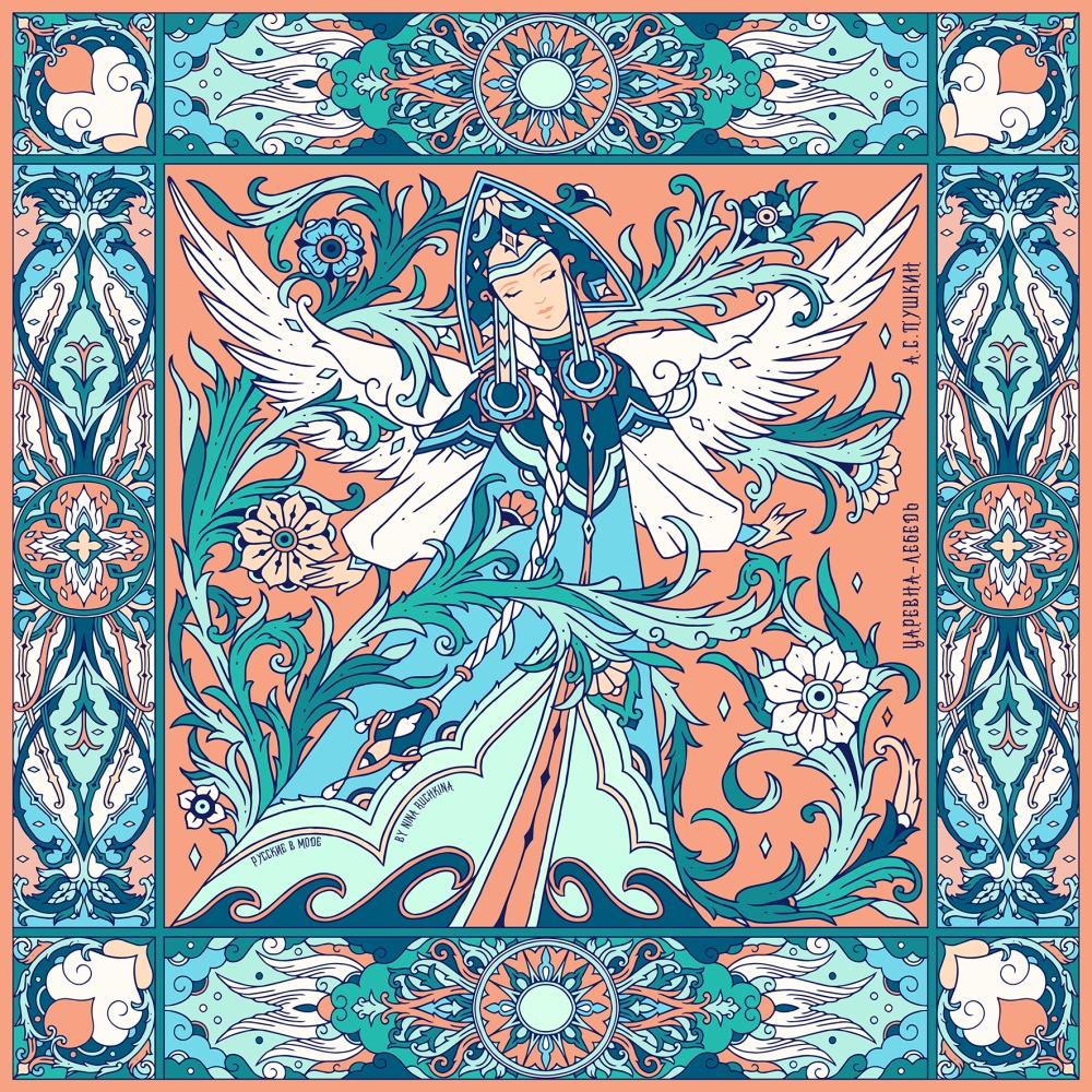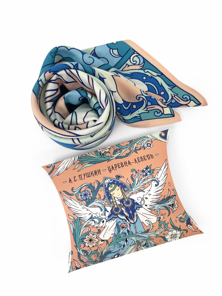 -Платок "Царевна-лебедь", 90*90 , 70% шёлк 30% вискоза