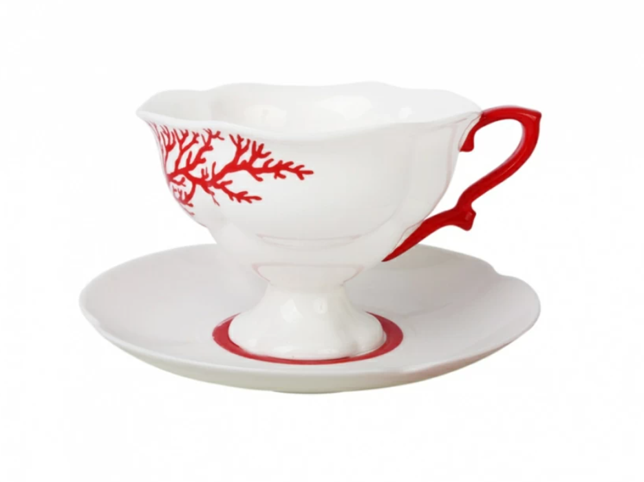 Чашка с блюдцем чайная рисунок Коралл изготовлена на Императорском фарфоровом заводе из костяного фарфора с элементами ручной росписи. Автор рисунка - Шуляк Г.Д. Объем изделия - 220 мл.
